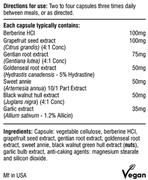 Our Berberine + Grapefruit Seed formula offers an array of potent herbal compounds standardised to provide a guaranteed potency of each of the active components. It differs from other antimicrobial formulas on the market due to the sheer diversity of compounds provided in the formula, and therefore can be considered to be an extremely potent and effective combination.