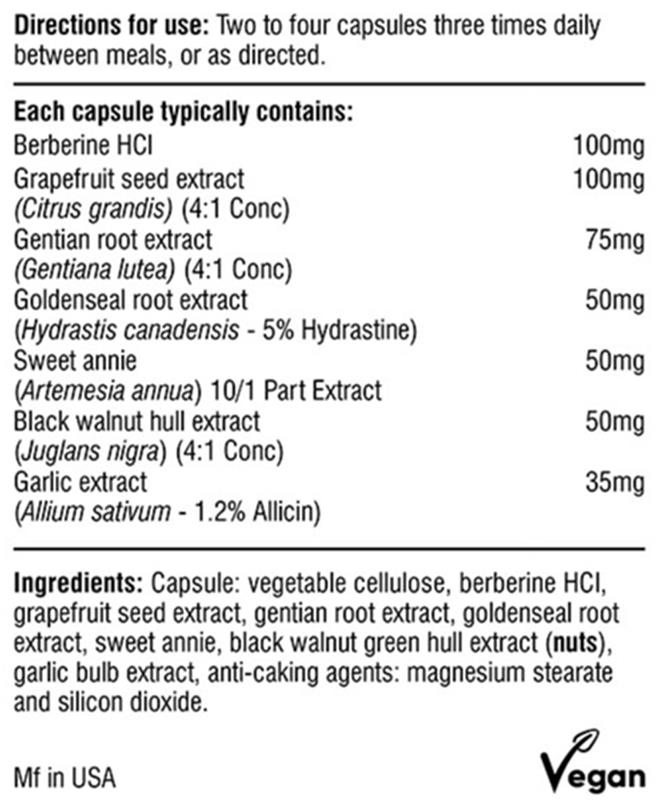 Berberine + Grapefruit Seed is a powerful, broad-spectrum formula with standardised extracts of herbs researched for their use in bacteria and parasite removal