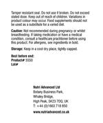 Food supplements should not be used as a substitute for a healthy lifestyle or a varied, balanced diet